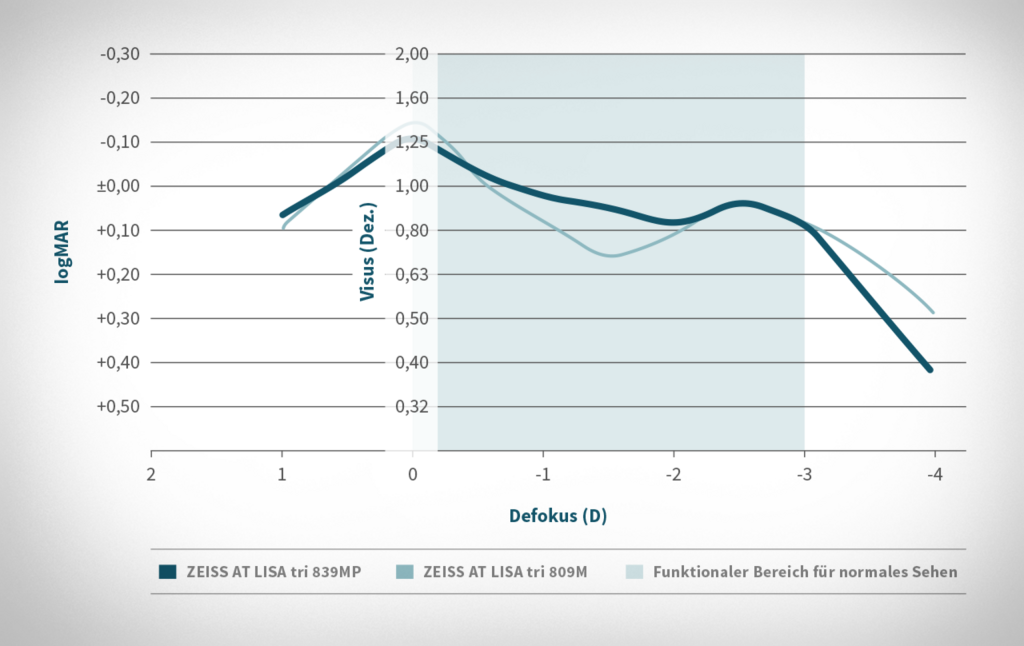 Die Grafiken zeigen die definierten Abstände der Brennpunkte einer Trifokallinse ZEISS LISA 839